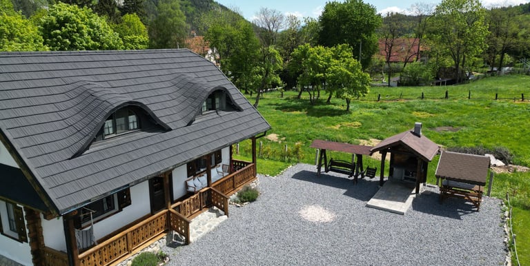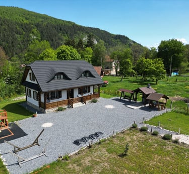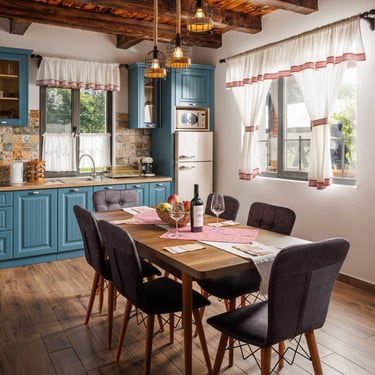 Închirierea integrală a căsuței Old Cottage, cu două dormitoare, living, bucătărie, terasă și grădină.