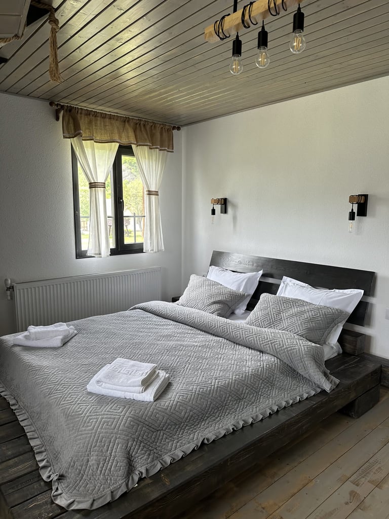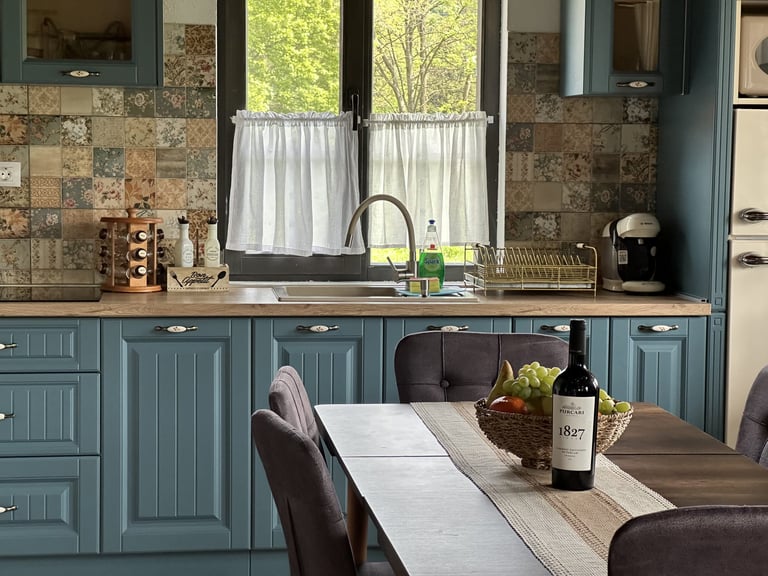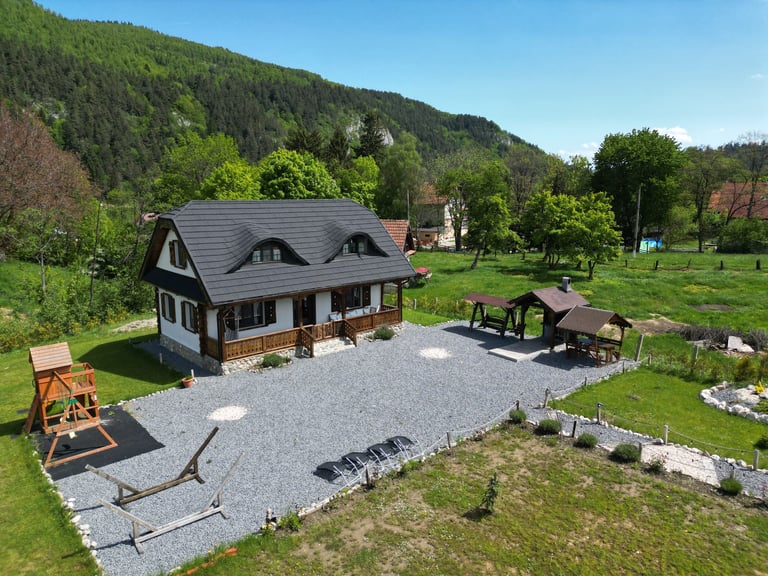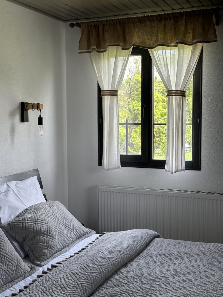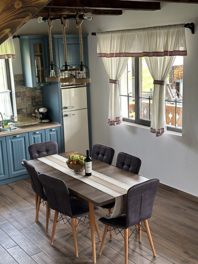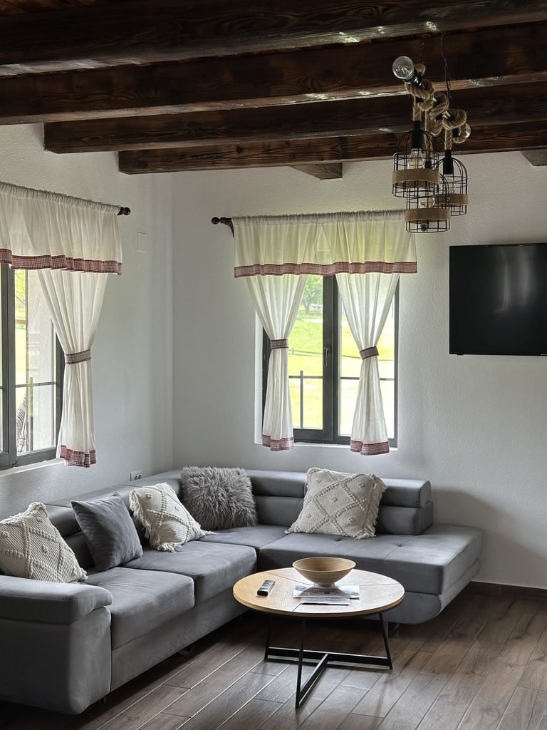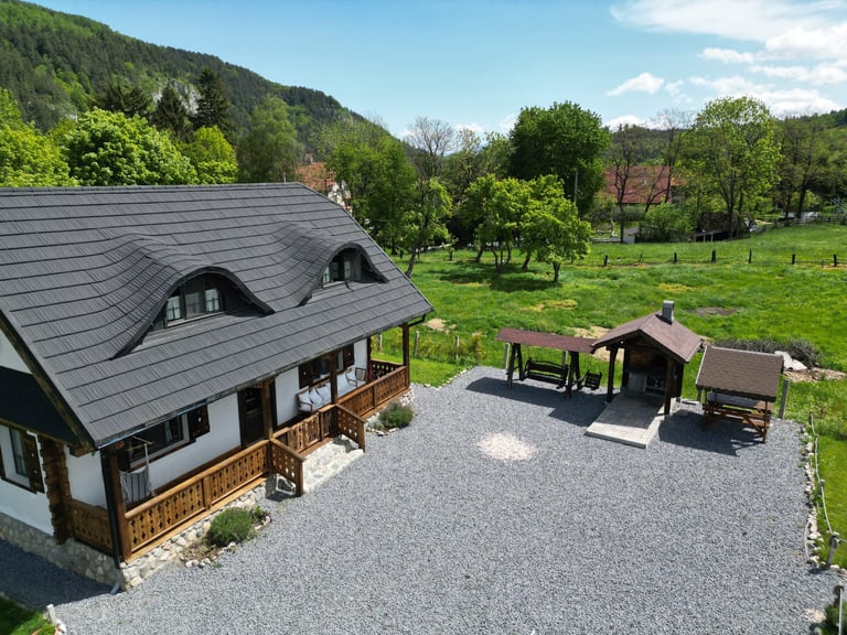 Ever since we arrived at the location and parked we were pleasantly impressed by what we saw. A very large courtyard with various facilities and a house like a fairytale surrounded by beautiful scenery. The house is clean, spacious and very nicely decorated in a rustic style. The hosts were very hospitable even welcoming us with fruit, cakes and a bottle of wine. Although we came prepared with different card games, we found here others, including backgammon and a game of remi which we enjoyed. It is a quiet and very nice place and we had a great time in the few days we had. I highly recommend!