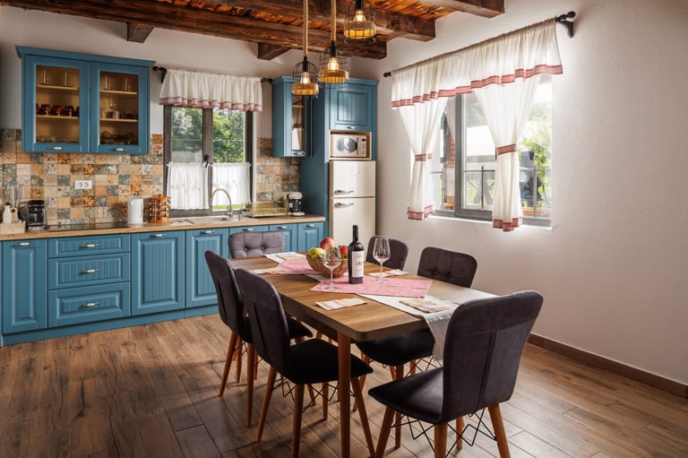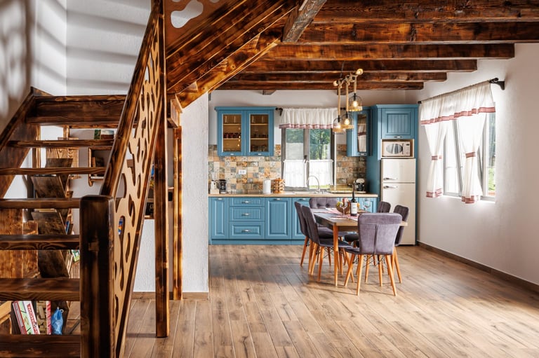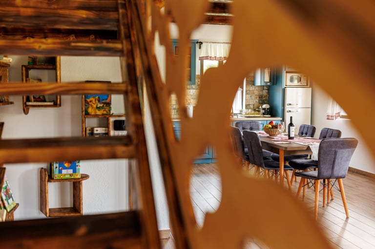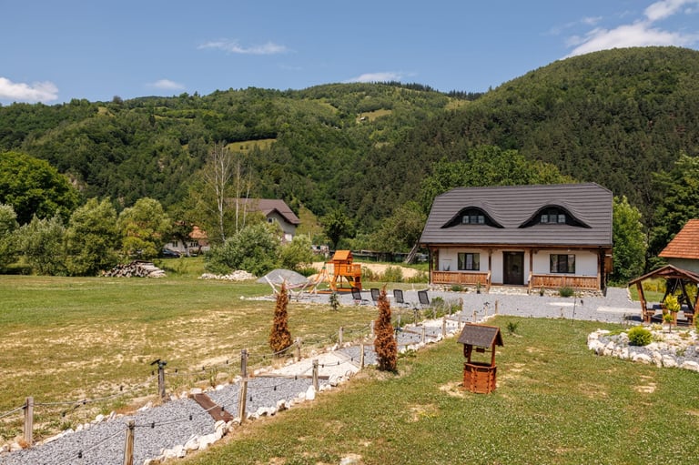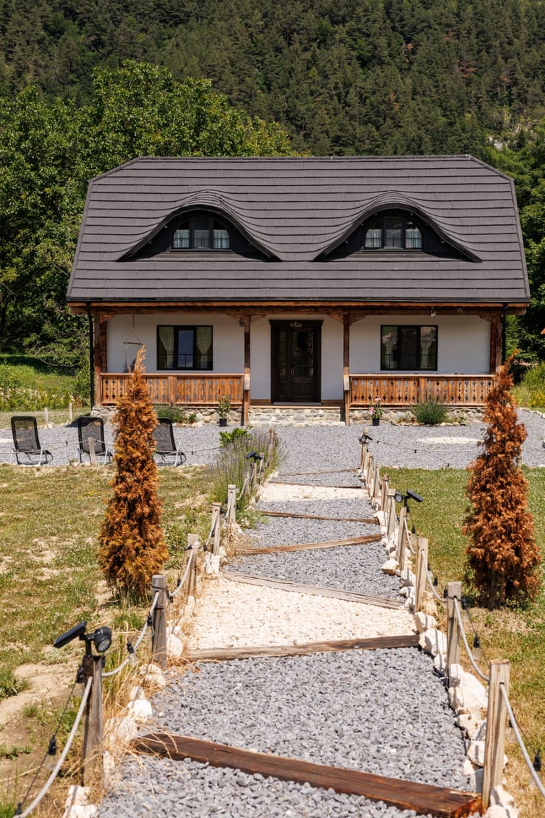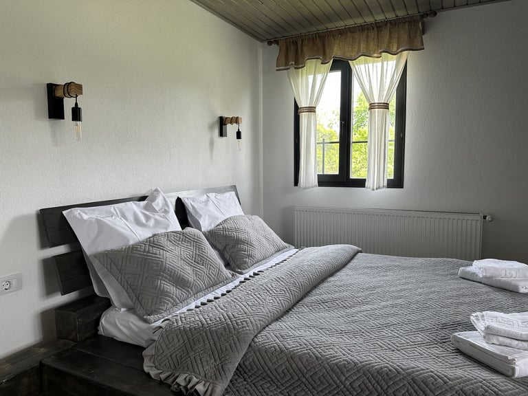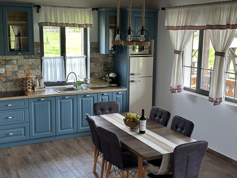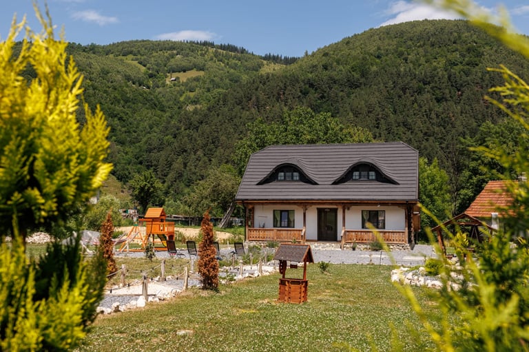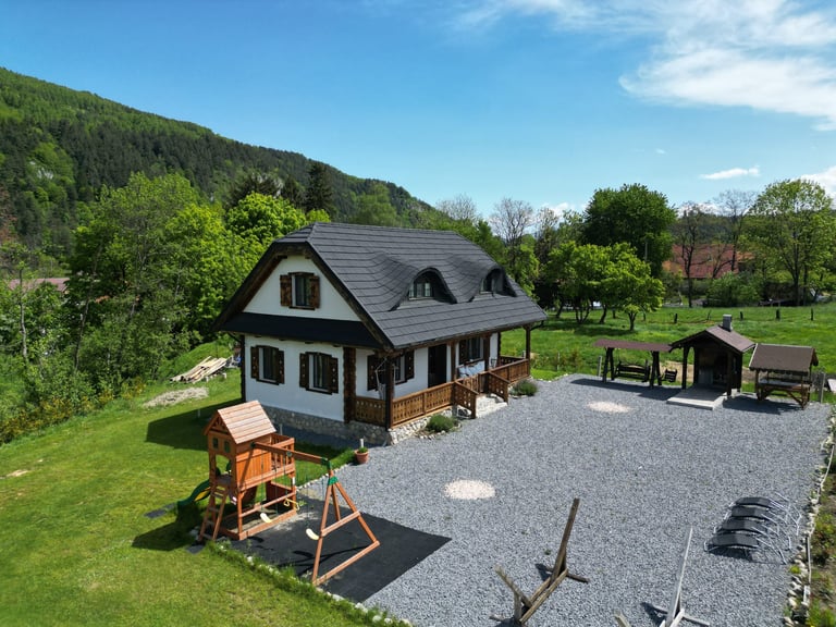 Ever since we arrived at the location and parked we were pleasantly impressed by what we saw. A very large courtyard with various facilities and a house like a fairytale surrounded by beautiful scenery. The house is clean, spacious and very nicely decorated in a rustic style. The hosts were very hospitable even welcoming us with fruit, cakes and a bottle of wine. Although we came prepared with different card games, we found here others, including backgammon and a game of remi which we enjoyed. It is a quiet and very nice place and we had a great time in the few days we had. I highly recommend!